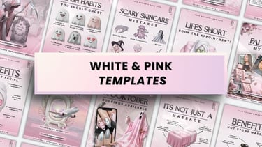 Soft pinks and clean whites, anchored by crisp black text. Fresh, modern, and effortlessly stylish – for brands who want their feed to feel chic, minimalist, and approachable